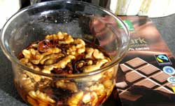 valnødder, 4 dl bouillon, 2 spsk. olie, 4 dl græsk yoghurt. Serveres